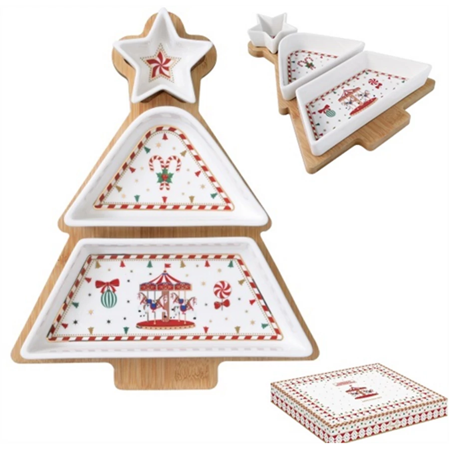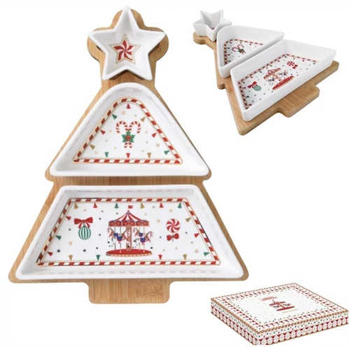 R2S.2186CHWO Porcelántálka 6db-os szett kerek bambusztálcán 25cm, Christmas Wonderland